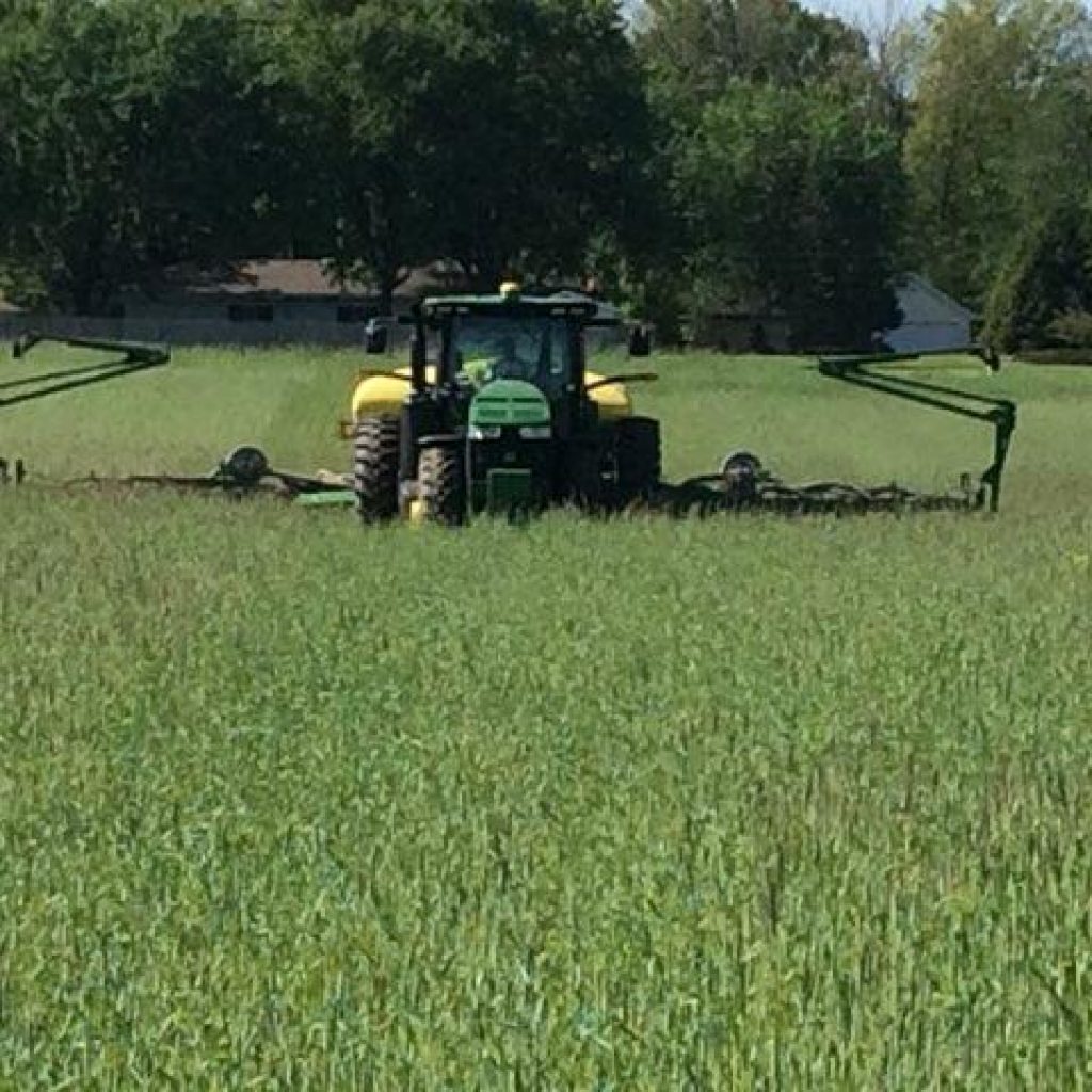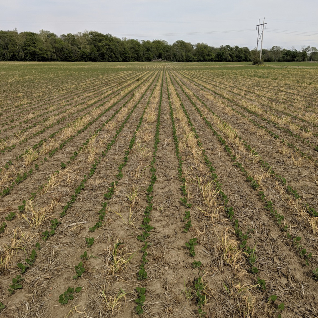 Planting beans into live cereal rye. The key to planting into cover crop is to get the pounds per acre right when you plant, so it is not too thick.