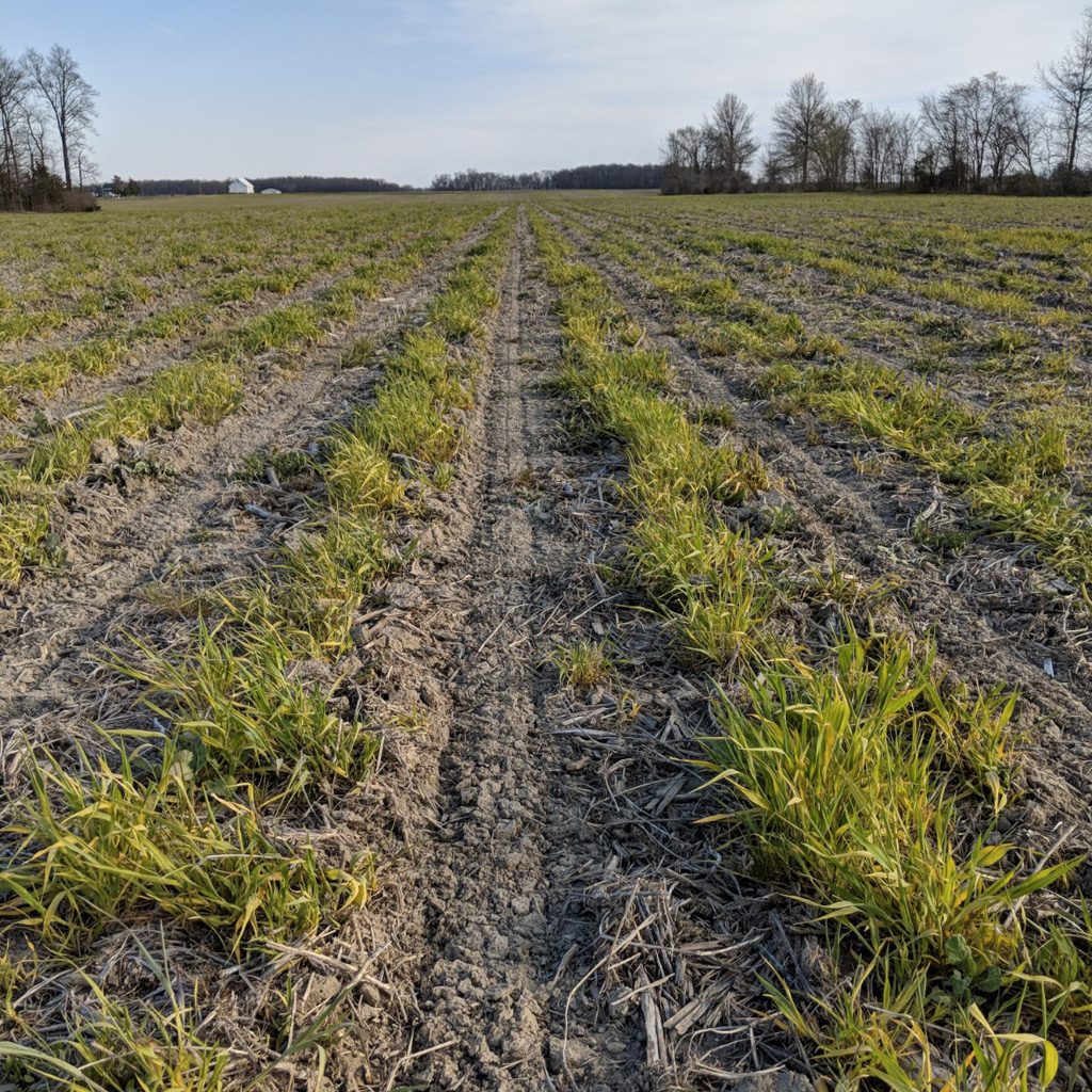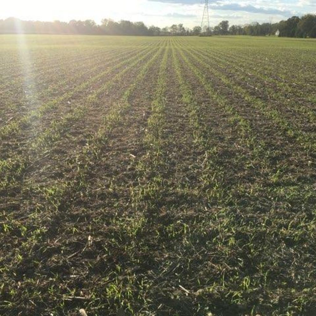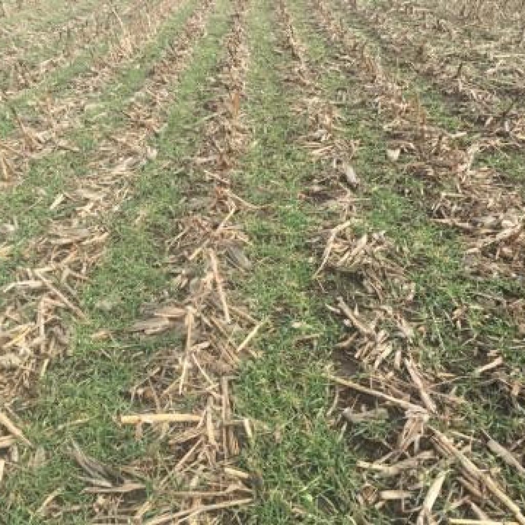 These are cereal rye, barley, oats, radishes and annual rye planted in our corn stubble field. They were planted in thirty inch rows to run between the stalks, burying the corn fodder and planting a cover crop.